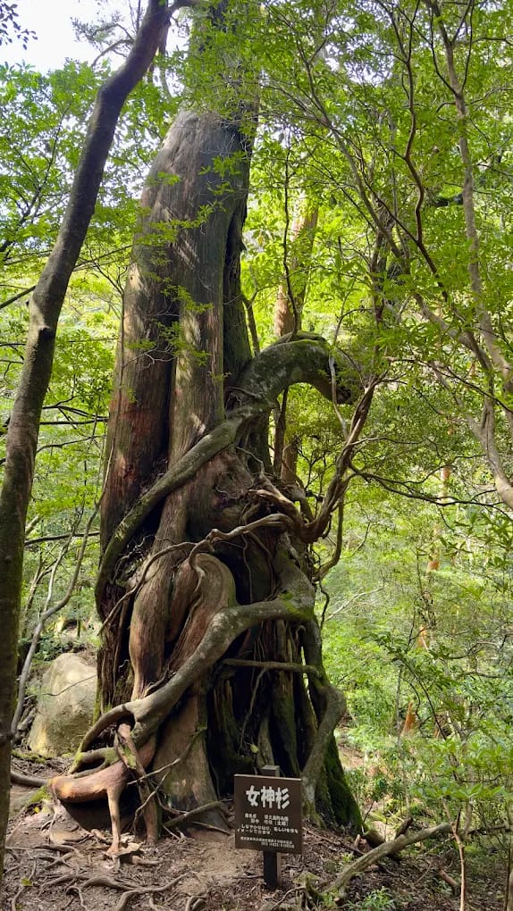 Drive to Yakusugi Land, a UNESCO-adjacent forest with boardwalked trails leading to ancient cedars β Buddha Sugi, Futago Sugi, Sennen Sugi β each one named and carrying its own local legend.